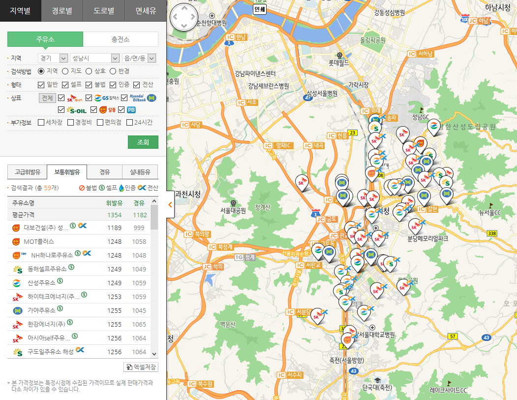 근데 지역별로 기름값차이가 생각보다 많이나서 좀 뒤져 봤더니